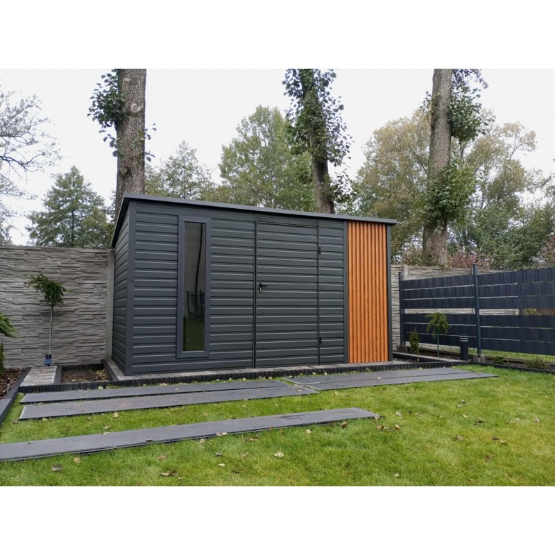 - drzwi wejściowe jednoskrzydłowe w kolorze grafitowym, szerokość 1 m, wysokość 2 m,
