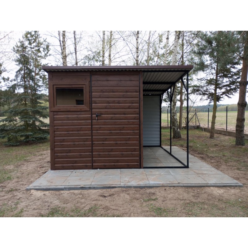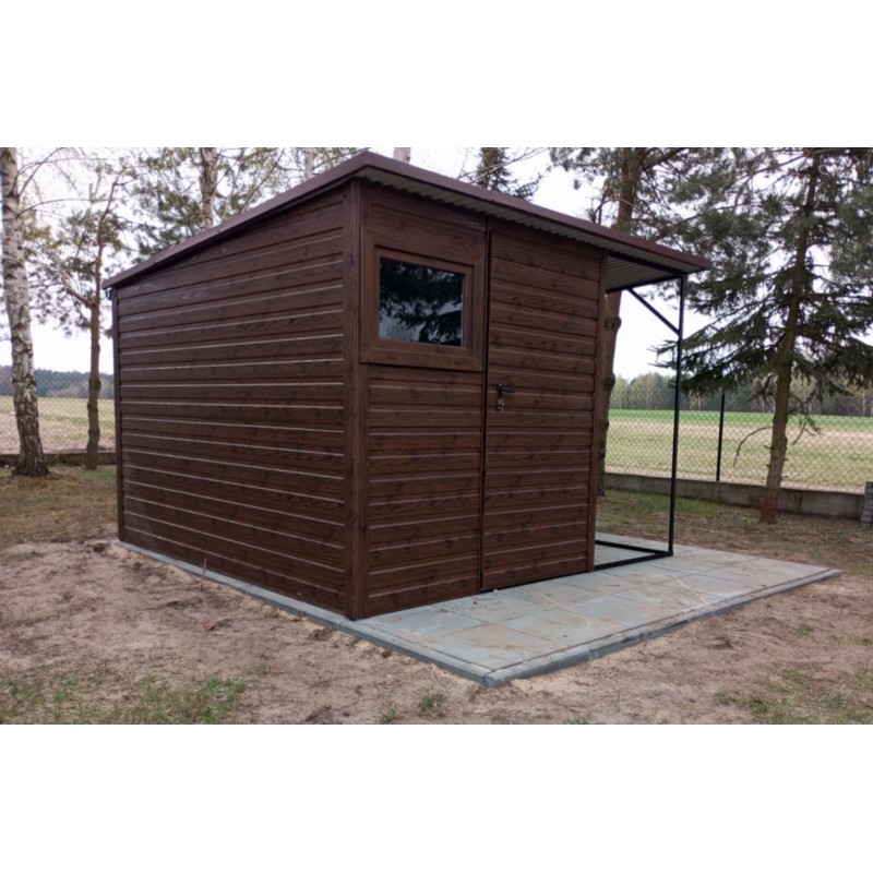 Zdjęcia z oferty przedstawiają drewutnie z oknem jak również zawierają dodatkowe opcje płatne. Cena w ofercie nie uwzględnia okna.