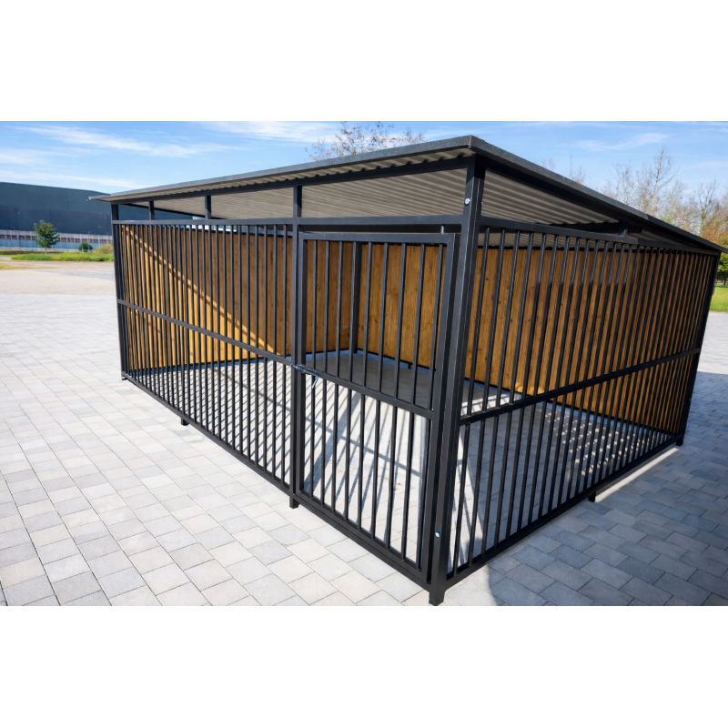 Solidny metalowy kojec dla psa przeznaczony do ogrodu lub na podwórko. Stabilna konstrukcja stalowa zapewnia bezpieczeństwo psa oraz trwałość na lata.